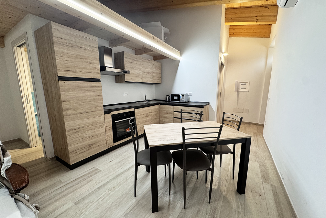 L'appartamento si distingue per la sua distribuzione funzionale tipica del bilocale. Un luminoso soggiorno con angolo cottura a induzione e divano letto matrimoniale accoglie i tuoi momenti di relax. La camera matrimoniale separata offre il giusto riposo in un ambiente curato e silenzioso. Il bagno completo garantisce privacy e praticità dopo una giornata di mare.